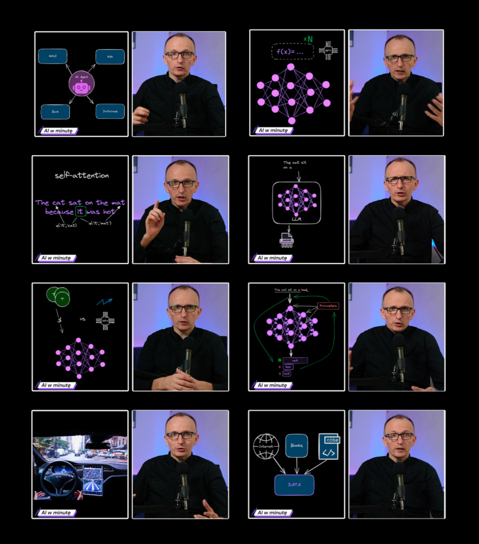 Są to krótkie wideo o długości około minuty o dużym zastrzyku przydatnej wiedzy o sztucznej inteligencji wraz z obrazowym opisem.